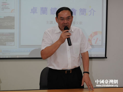 梅克保在聽取農(nóng)會組織負(fù)責(zé)人介紹卓蘭鎮(zhèn)水果生產(chǎn)銷售情況后講話。(湖南省臺辦 李蘭 攝)