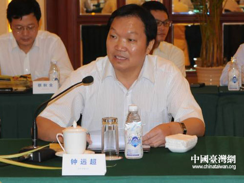 四川省臺辦副主任鐘遠超主持座談會。圖片來源:四川省臺辦