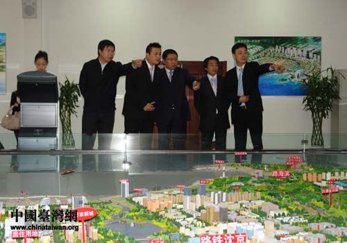 臺灣青商總會訪問團觀看葫蘆島市規劃圖(圖片來源:葫蘆島市臺辦)
