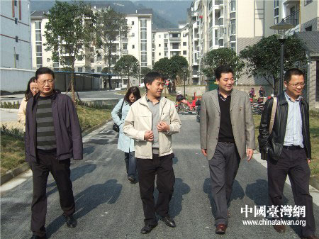 成都市臺辦主任戴浚(前排左二)一行在臺灣“愛心家園”安置小區考察。圖片來源:成都市臺辦
