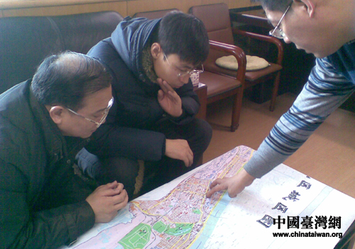 撫順新?lián)釁^(qū)政府盧副區(qū)長(zhǎng)向臺(tái)灣藍(lán)天電腦集團(tuán)駐沈陽(yáng)部開(kāi)發(fā)處劉輝課長(zhǎng)等介紹南站地區(qū)整體改造規(guī)劃情況(圖片來(lái)源:撫順市臺(tái)辦)