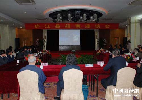 廬江縣政協主席、縣招商領導組組長夏明生主持座談會,與會臺商觀看了招商引資宣傳片,廬江縣副縣長王樹理介紹了縣臺商工業園和臺灣農民創業園的情況和招商優惠政策。雙方就招商引資的政策和具體問題進行了深入地探討。臺商對廬江縣的投資環境表示滿意,認為廬江資源豐富,環境優越,非常適合臺商投資創業。