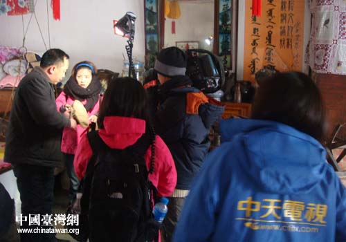 臺灣中天電視臺《臺灣腳逛大陸》節目組走進滿足人家(圖片來源:本溪市臺辦)