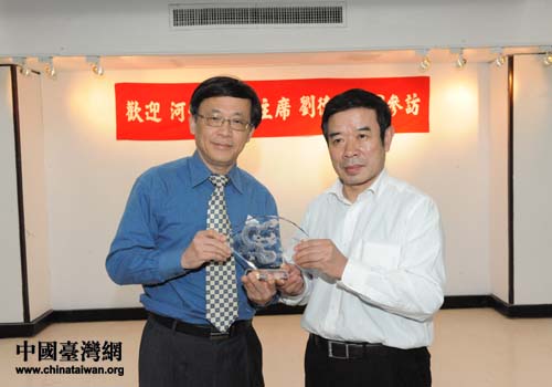 日前,河北省政協主席劉德旺率團赴臺灣交流參訪。圖為劉德旺(右)參訪臺北歷史博物館時與臺北歷史博物館館長張譽騰(左)合影(中國臺灣網)