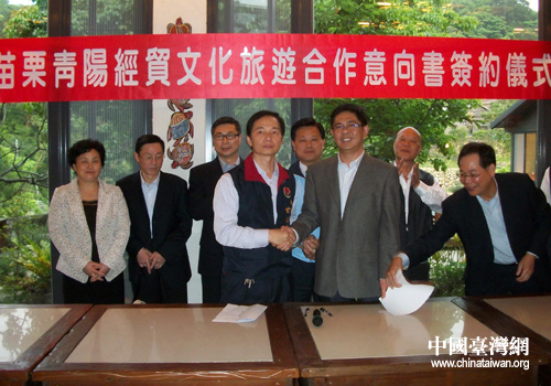 中國臺灣網5月9日池州消息 日前,經安徽省池州市臺辦的積極運作,池州市青陽縣與臺灣苗栗縣成功結對,正式簽署了《關于建立經濟文化旅游產業暨佛教文化交流與合作關系意向書》。