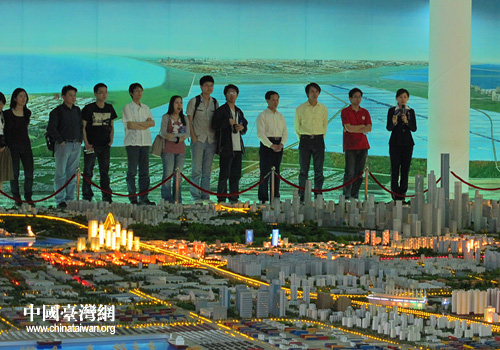 交流團參觀濱海新區(qū)規(guī)劃建設展館(圖片來源:天津臺辦)
