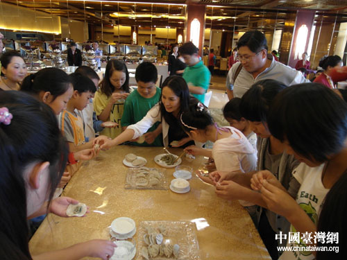 高金素梅和孩子們包餃子。(綿陽臺辦 鄭勤 攝)