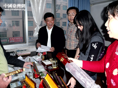 嚴守仁、嚴淑珍一行先到田坪鎮(zhèn)金竹村祭祖,之后在玉屏縣政協(xié)副主席、統(tǒng)戰(zhàn)部長羅友元、副部長臺辦主任楊芳等人的陪同下,參觀了玉屏縣簫笛廠。在玉屏簫笛廠,嚴守仁、嚴淑珍一行興致勃勃地參觀了簫笛陳列館,深入簫笛廠制作車間,觀看了簫笛的選料、鉆孔、雕刻等制作過程。嚴守仁、嚴淑珍對玉屏縣燦爛的簫笛文化、精美的簫笛產(chǎn)品贊不絕口,并當場購買了幾副簫笛帶回臺灣。