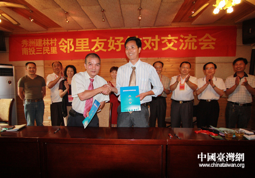 中國臺灣網7月26日嘉興消息 7月21日,臺灣南投縣三民里與嘉興市秀洲區王店鎮建林村共同簽訂了兩岸鄰里友好結對交流意向書,標志著三民里和建林村正式締結為友好社區(鄰里)。