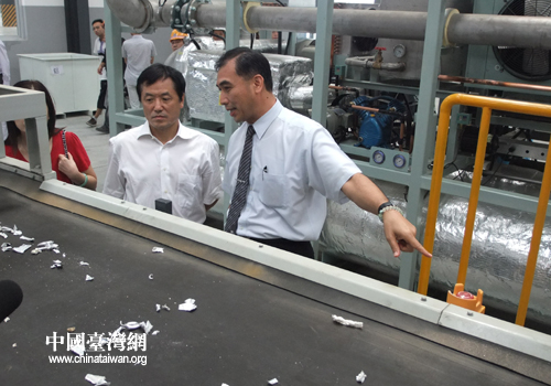 德陽市委副書記張金明在什邡大愛感恩環(huán)保科技有限公司察看設(shè)備試運(yùn)轉(zhuǎn)情況。(圖片來源:德陽市臺辦)