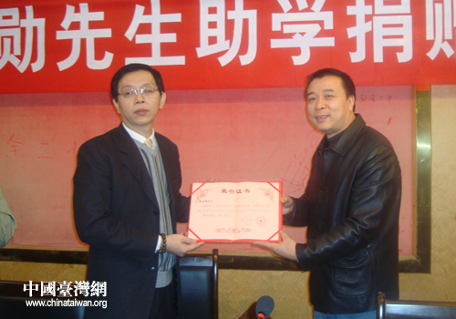 中國臺灣網12月27日新余消息 “蔡伯伯的慷慨解囊,讓我們看到完成學業的希望,讓我們感受到春天般的溫暖……”日前,臺灣亞煜國際集團總經理、贛臺文化交流中心理事長蔡孟勛先生助學捐贈儀式在新余市三中舉行,受贈學生劉凡星滿懷感激地說。