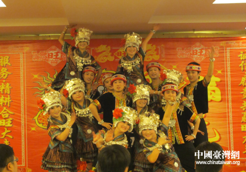 旺旺貴陽分公司員工表演的舞蹈《苗族敬酒歌》。(貴陽市臺(tái)辦 段小芬 攝)