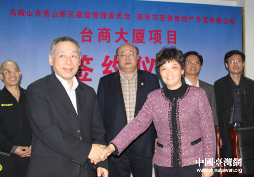 中國臺灣網5月3日馬鞍山消息 日前,由南京(臺灣)明木投資管理顧問有限公司和南京(臺灣)宏普房地產開發有限公司共同出資,馬鞍山市政府鼎力支持的馬鞍山臺商興業大廈在風景秀麗的秀山新區舉行了正式的簽約儀式。秀山新區指揮長龔玉芝、南京(臺灣)宏普房地產開發有限公司董事長段津薪共同在項目書上簽字。