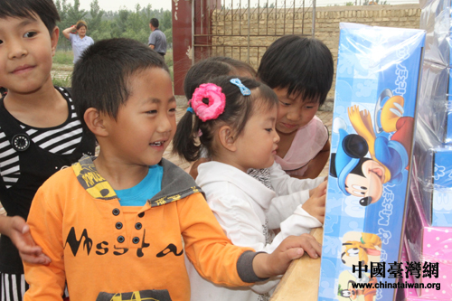 東營臺辦為小朋友準備了書包、文具等節日禮物。(圖片來源:東營臺辦)