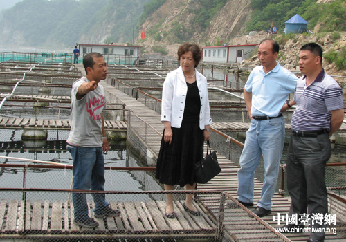 中國臺灣網6月14日丹東消息 日前,遼寧丹東市臺辦主任李秀環等到臺企遼寧太平灣漁業有限公司調研,并參觀了該公司在鴨綠江河口上游的三文魚養殖基地。