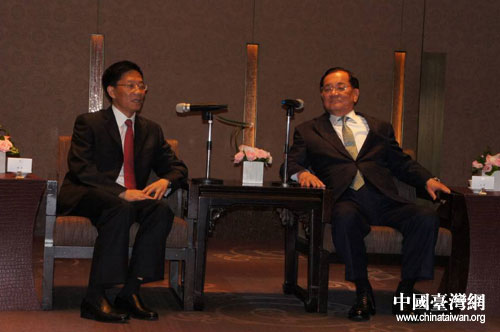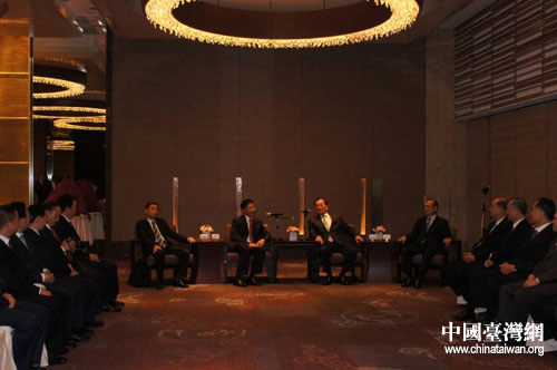 21日晚鐘勉一行在臺北會見中國國民黨榮譽主席連戰、中國國民黨副主席林豐正以及臺灣政界、工商界知名人士。 圖片來源:四川省臺辦