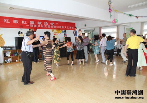 參觀中,臺灣嘉賓隨性地與社區(qū)居民跳起舞蹈,進行親切交流。(貴陽市臺辦 王康 攝)