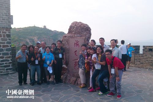 “2012海外臺商齊魯行”的成員們在蓬萊閣留影。(圖片來源:煙臺臺辦)