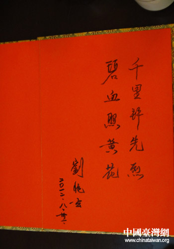 座談會(huì)上,劉兆玄表示“對(duì)于黃興這樣的偉人,他的故居應(yīng)該要竭盡全力保護(hù)好它”,隨后他還親筆題詞“千里拜先烈,碧血照黃花”,以表對(duì)先烈的崇敬之情。