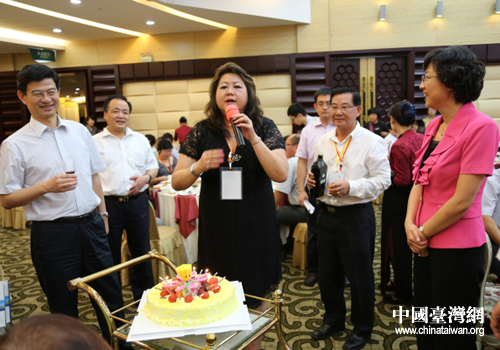 中國臺灣網9月6日威海消息 日前,威海市政府在抱海大酒店舉行盛大酒會,歡迎“2012海外臺商齊魯行”考察團一行。當威海市委副書記、市長張惠得知考察團成員、世界臺商總會非洲總會長孫宗美女士過生日時,特意安排制作了一個大蛋糕,把威海人民的祝福送到臺商心窩里,把宴會的氣氛推向了高潮。