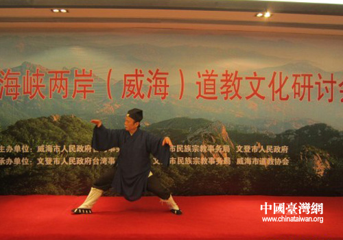 中國臺灣網(wǎng)9月20日威海消息 9月18日,第三屆海峽兩岸(威海)道教文化研討會在文登市舉行。臺灣正宗全真道教會理事長、全真正宗龍門派第二十六代傳人巫平仁觀主率團來威海參會,并在研討會上表演了一套弘道養(yǎng)生太極拳,弘揚傳統(tǒng)道教文化。(中國臺灣網(wǎng)、威海市臺辦聯(lián)合報道)