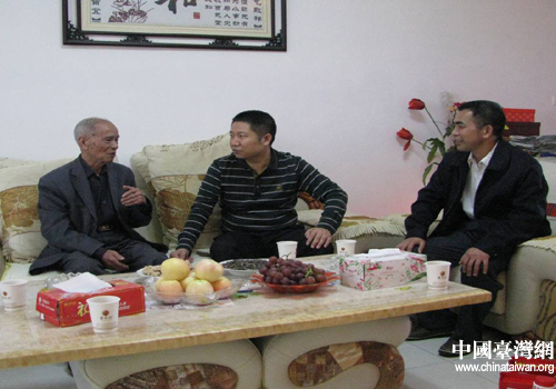 武岡市委常委統(tǒng)戰(zhàn)部長、副市長張獻禮慰問定居老臺胞唐順光。(圖片來源:武岡市臺辦)