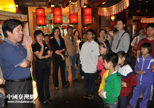 慰問活動在老舍茶館舉行,參加活動的臺籍學生在老師和家長的陪同下,興高采烈的來到老舍茶館,在茶館辦公室主任安澤京的陪同下,進行了參觀,了解了茶館從無到有,從小到大,從簡單的茶館到以茶會友,成為當前聯系世界各地文化,特別是兩岸傳統文化重要紐帶的發展歷程。