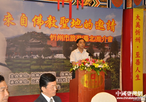 市委常委、副市長王士樺推介忻州旅游資源。(圖片來源:忻州市臺辦)