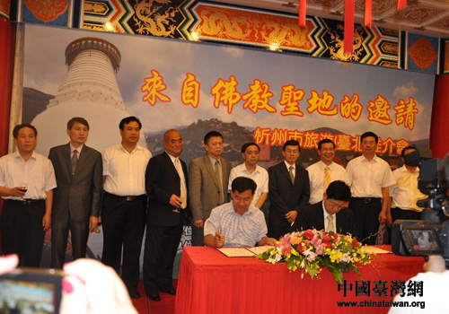 推介活動儀式上,忻州市旅游局負責人和臺灣旅游業經理人協會理事長分別代表雙方簽署了旅游戰略合作協議,雙方將本著互惠互利、合作雙贏的原則,互相引進、共同發展。(中國臺灣網、忻州市臺辦聯合報道)