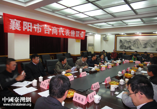 中國(guó)臺(tái)灣網(wǎng)11月12日襄陽(yáng)消息 日前,襄陽(yáng)市臺(tái)辦在川惠大酒店召開襄陽(yáng)市臺(tái)商代表座談會(huì),重點(diǎn)通報(bào)“兩個(gè)中心、四個(gè)襄陽(yáng)”建設(shè)、襄陽(yáng)臺(tái)資企業(yè)協(xié)會(huì)運(yùn)行、襄臺(tái)經(jīng)貿(mào)交流與合作及對(duì)臺(tái)招商引資、第十屆湖北(武漢)臺(tái)灣周襄陽(yáng)分會(huì)場(chǎng)籌備工作、《湖北省人民政府關(guān)于進(jìn)一步支持臺(tái)資企業(yè)加快發(fā)展的若干意見》的宣傳貫徹落實(shí)等方面情況,就相關(guān)事項(xiàng)廣泛聽取32位在襄陽(yáng)投資、工作的臺(tái)商代表的意愿和建議。