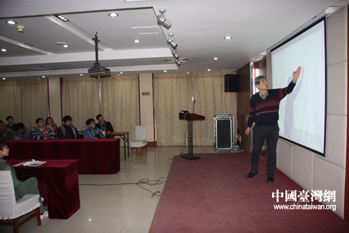 運河文化專家陳克為兩岸青年學生講述運河與天津的歷史淵源。(中國臺灣網發 王亮攝)