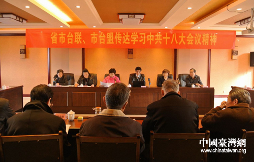 中國臺灣網11月21日成都消息 日前,四川省臺聯、成都市臺聯、臺盟成都支部聯合組織部分在蓉臺胞和臺盟盟員傳達學習黨的十八大精神。十八大代表、四川省臺聯會長劉琪全面系統地傳達了黨的十八大會議盛況和會議精神,并與參會臺胞交流了自己親臨大會的體會和收獲。會議由省臺聯副會長馮雪菊主持。