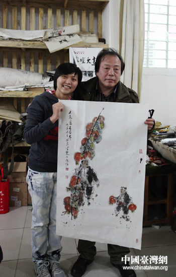 回鄉(xiāng)期間,汪蘇芳儀女士一行還特意拜會了她的老朋友——臨澧縣知名畫家覃仕泉先生。去年11月,汪蘇芳儀女士陪同她的婆婆汪老太太回鄉(xiāng)祭祖,曾與覃仕泉先生有過一面之緣,汪老太太還獲贈覃先生國畫作品《喜盈門》。對于這幅作品,汪老太太十分珍愛,回到臺灣后,頻頻向親友展示。汪蘇芳儀的大女兒是個國畫迷,看到《喜盈門》這幅作品后愛不釋手,便撒嬌向奶奶索要。一向疼愛孫女的汪老太太卻一反常態(tài)沒有答應,“這是覃大師送我的,誰也不送,我要將它掛在自己的房間里,看到這幅畫就像看到了家鄉(xiāng)的親人。”聽了汪蘇芳儀女士的介紹,覃仕泉先生非常感動,當即潑墨揮毫,現(xiàn)場作畫《又是一年春來早》相贈其大女兒。得到覃先生的墨寶,汪蘇芳儀和她的兒女們十分高興,表示一定將其帶到臺灣好好珍藏,更希望覃先生能到臺灣去開個人畫展,把湖湘文化介紹到臺灣,讓更多的臺灣同胞了解我們的傳統(tǒng)文化。(中國臺灣網(wǎng)臨澧縣臺辦通訊員 伍玲)