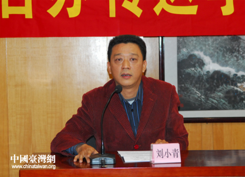 廣東省臺辦綜合研究處負責同志作十八大精神學習體會專題發(fā)言。(圖片來源:廣東省臺辦)