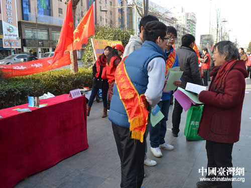 中國(guó)臺(tái)灣網(wǎng)12月11日周口消息 日前,周口市川匯區(qū)臺(tái)辦聯(lián)合區(qū)司法局組織由30多名志愿者組成服務(wù)隊(duì)開展涉臺(tái)普法宣傳活動(dòng)。