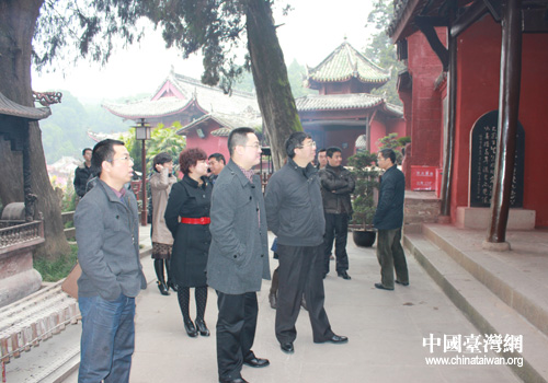 遂寧市委臺(tái)辦考察團(tuán)參觀梓潼縣七曲山大廟。(圖片來源:綿陽市臺(tái)辦)