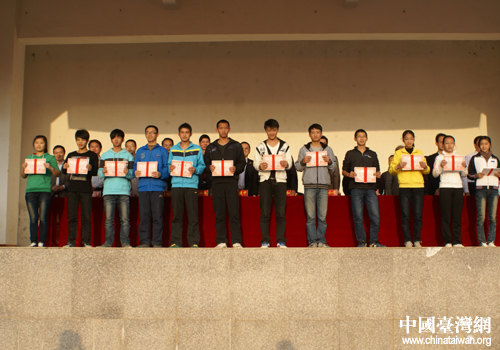 中國臺灣網12月26日漳州消息 日前,漳浦達志中學舉行了2011-2012學年“陳瑞和獎教獎學金”頒獎大會。臺商陳瑞和偕子陳建中出席大會并為獲獎的106名教師和205名學生頒獎。