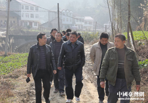慰問團一行徒步深入農(nóng)戶。(圖片來源:常德市臺辦)