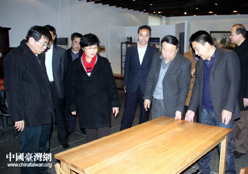 郇梅一行走訪日照嵐橋富凱木業有限公司。(圖片來源:日照市臺辦)
