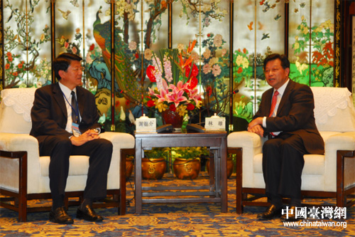 廣東省委常委林雄會見中國國民黨臺南市黨部主委謝龍介。(圖片來源:廣東省臺辦)