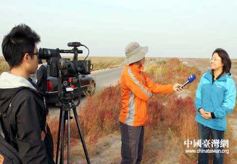 臺(tái)灣中天電視臺(tái)拍攝《黃河入海流》電視專題片。(圖片來源:東營(yíng)市臺(tái)辦)
