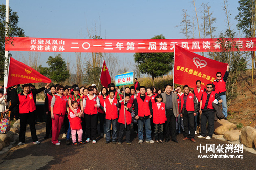 中國臺灣網3月22日襄陽消息 三月春光,草長鶯飛。日前,襄陽市楚天讀者、獻血志愿者、湖北文理學院志愿者、黨員志愿者共1000多名齊聚在臺資企業襄陽鳳凰溫泉,一起寫下心愿,種下樹苗,共建楚天鳳凰讀者林。