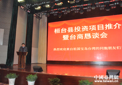桓臺縣舉行投資項目推介會暨臺商懇談會,副縣長尹鵬主持會議。(圖片來源:桓臺縣臺辦)