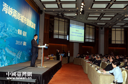 青島市委書記李群在海峽兩岸城市發展論壇上演講。(圖片來源:青島市臺辦)