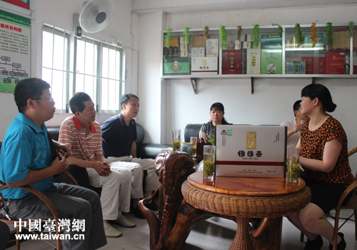 貴州省臺辦副主任代玲與貴州敬旺綠野食品有限公司負責人座談。(圖片來源:雷山縣臺辦)