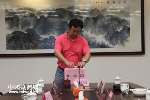 梅州市臺商協(xié)會副會長、廣東永昇食品有限公司副總曾政澤先生捐款。(圖片來源:梅州市臺辦)