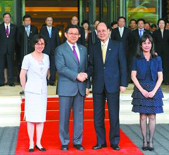 閩臺交流合作具有獨特優勢,特別是隨著兩岸服務貿易協議的簽訂和第五屆海峽論壇的成功舉辦,閩臺交流合作迎來了新的機遇。兩岸一家人,閩臺一家親,鄉里鄉親,更要常來常往。我們要按照兩黨、兩會、兩岸同胞的共同愿望,在雙方現有合作基礎上共創發展雙贏、共謀民生福祉,為進一步鞏固、深化兩岸和平發展大好局面貢獻力量。