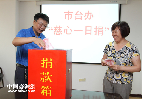 中國臺灣網7月8日東營消息 7月4日,東營市臺辦開展了以“攜手慈善、共創和諧”為主題的“慈心一日捐”活動。活動中,全體干部職工積極響應,踴躍捐款,奉獻愛心,共捐獻善款5200元,以實際行動弘揚中華民族樂善好施、扶貧濟困的傳統美德。(中國臺灣網、東營市臺辦聯合報道)