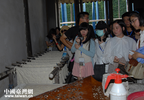 營員們參觀烏鎮藍印花布染坊。(圖片來源:上海市臺聯)