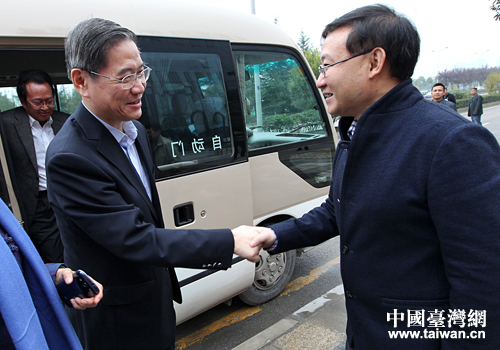 貴陽市委常委、統戰部長帥文(右一)迎接國務院臺辦張志軍主任。(當代貴州雜志社 傅泊霖 攝)
